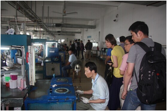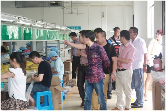 (圖為共創(chuàng)會一行參觀工廠,了解產品的制作流程與工藝。流水化的生產線,員工認真的工作態(tài)度都體現了晉源祥的專業(yè)性)