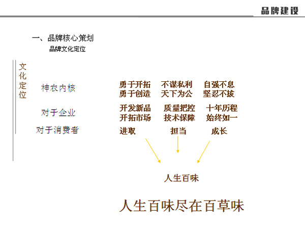 文化核心建設(shè)四步走:發(fā)掘文化的力量,進(jìn)行文化梳理;擁有獨(dú)特個(gè)性,進(jìn)行策略制定;分享共同的價(jià)值觀,運(yùn)用調(diào)性定位語與廣告語;建立美譽(yù)度與忠誠度,利用各媒介案稿。