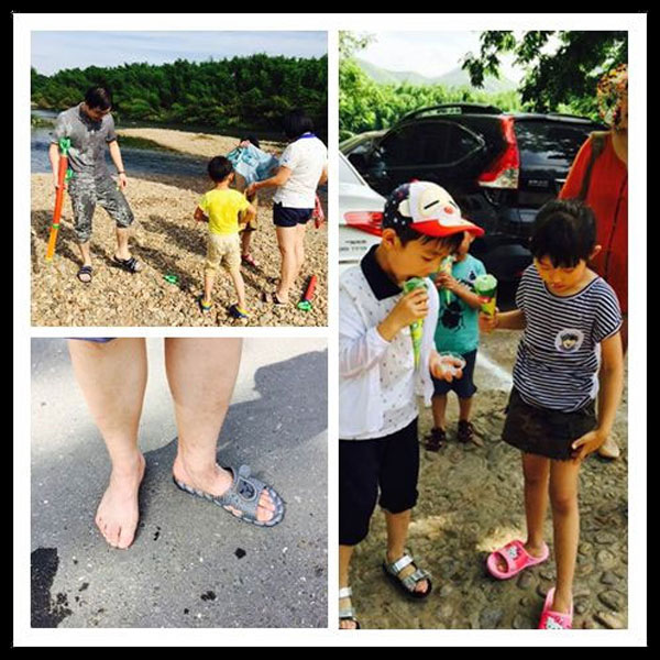 大戰(zhàn)結(jié)束,有人丟鞋,有人濕身,有人摔屁股,畫面有趣逗樂。孩子們也在玩樂后開心地吃著冰激凌,美美的清涼夏天里,充滿著歡愉和幸福的味道。