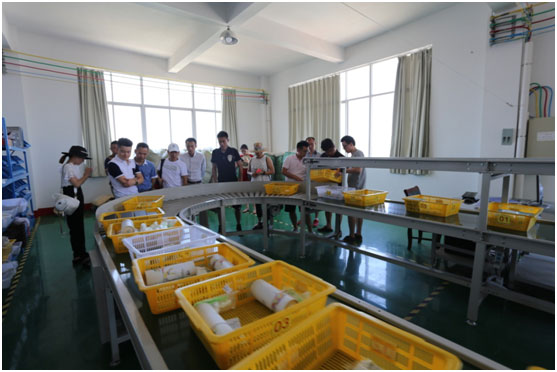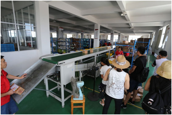 共軍一行人參觀天喜網(wǎng)絡科技有限公司的辦公環(huán)境、倉庫流水線操作,工廠的包裝、陳列、手藝都做得嚴謹有序。