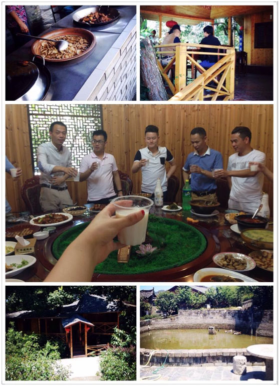 我們自駕驅(qū)車到達麗水當?shù)兀瑫T浙江天喜網(wǎng)絡科技有限公司總經(jīng)理李欣駿早已在具有當?shù)靥厣?“潛溪山莊”為游學共軍一行備好午餐。“春來便是桃花水,不辨仙源何處尋”,小編被這下車后的麗水美景所震驚。