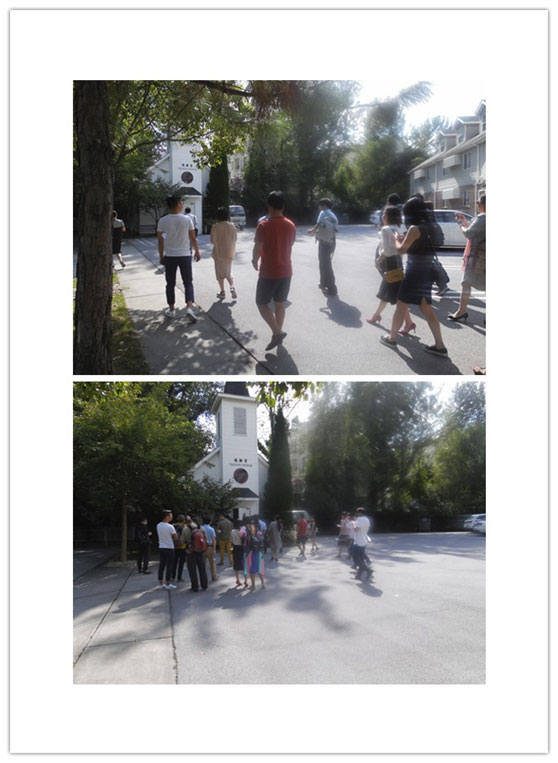 教堂簡單參觀結束后,吳老師帶領共創(chuàng)會一行人參觀德勝樣板房區(qū),也提示大家不要大聲喧嘩,也不要窺視別墅內(nèi),別墅都住著人家,以免影響住戶。德勝20多棟美制別墅,每年都被蘇州的一些外企高管租用,門口的國旗代表住戶的國籍。