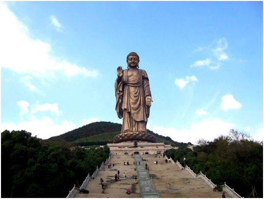 靈山大佛的建成彌補(bǔ)了中國(guó)五方佛少東方佛的缺憾。佛家認(rèn)為,東西南北中,各有一尊佛坐鎮(zhèn),歷史上中國(guó)只有四方佛:北方佛---云岡石窟大佛,西方佛------四川樂(lè)山大佛,南方佛----香港天壇大佛,中間佛-----洛陽(yáng)龍門(mén)石窟大佛,唯少一尊東方佛。94 年中國(guó)佛教會(huì)主席趙樸初提出修造東方靈山大佛,選址在無(wú)錫靈山。