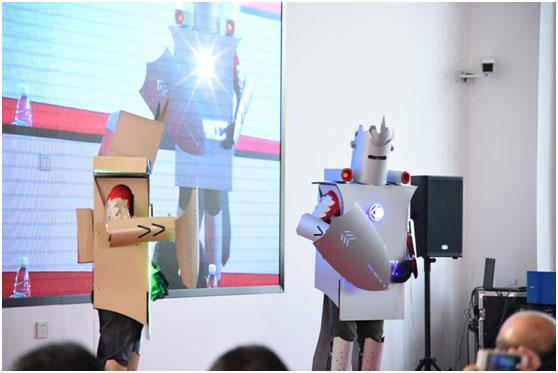 (以芬尼克茲自主研發(fā)制造的智能機器人設置開場,高端個性的開場讓人眼前一亮。)