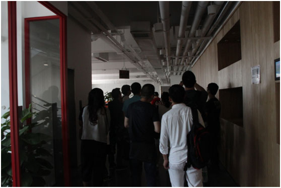 10月23號一早,共創(chuàng)會一行就來到了廣州芬尼克茲集團,首先進行集團的參觀,不虧為移動互聯(lián)網(wǎng)時代生存的“瘋狂組織”,集團內(nèi)部設計裝修全由員工自發(fā)設計裝修,別具個性特色。