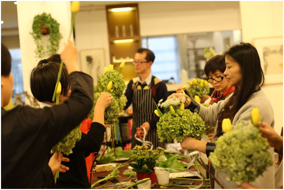 進(jìn)入實(shí)際動(dòng)手階段,花藝?yán)蠋熃馕鲅堇[著插花的每一個(gè)細(xì)節(jié),我們的女總裁們認(rèn)真聆聽,不時(shí)提出疑問。