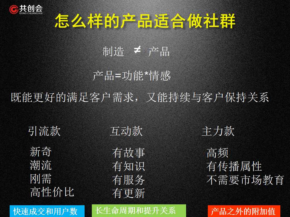 少就是多,學會聚焦。對于團隊尤其找1000個人,還不如10 10 10裂變。所有公司都可以做社群改造,但,不是所有產品都適合做社群。