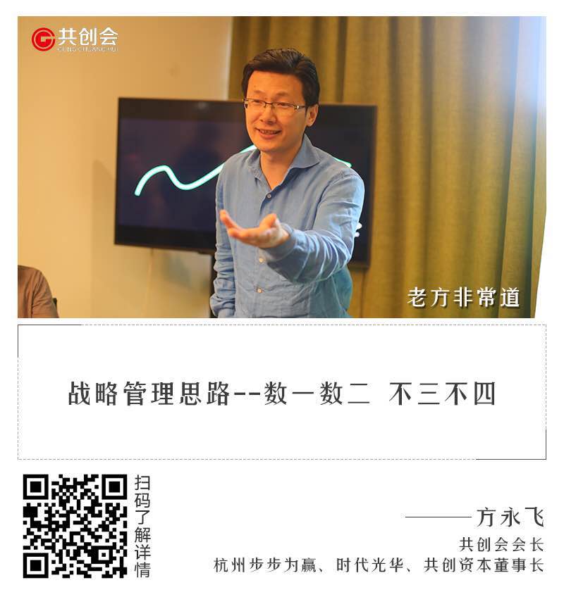2017年8月22日,共創(chuàng)會(huì)“老方非常道”活動(dòng)在西溪科創(chuàng)園如期舉行。未到場的共軍家人是不是感覺錯(cuò)過了一次絕佳的學(xué)習(xí)機(jī)會(huì)?沒關(guān)系!現(xiàn)在請跟隨小編的步伐,讓我們重溫一下本期老方的最新商業(yè)模式、資訊、管理思路分享吧!