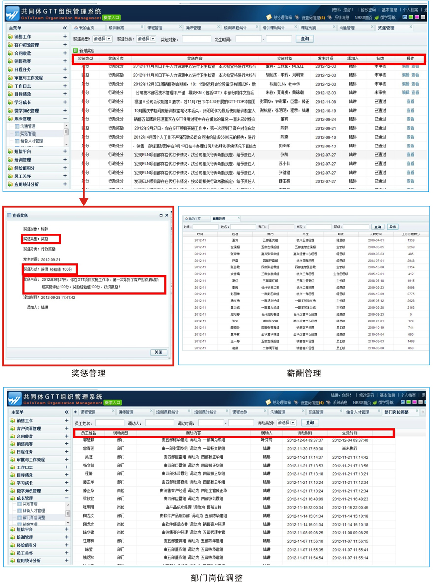 GTT系統(tǒng)通過(guò)培訓(xùn)管理、工作溝通、獎(jiǎng)懲管理、儲(chǔ)備人才等相關(guān)功能記錄員工在公司的關(guān)鍵行為,記錄員工的成長(zhǎng)路線,不僅為員工個(gè)人提供一份完整、動(dòng)態(tài)的個(gè)人成長(zhǎng)檔案,更為公司的人才儲(chǔ)備提供客觀、公正的數(shù)據(jù)信息。避免企業(yè)人才斷層,員工成長(zhǎng)系統(tǒng)建設(shè)的本質(zhì)是建立一套動(dòng)態(tài)的、例行化運(yùn)作的人才考察、選拔、培養(yǎng)、淘汰、使用的機(jī)制。