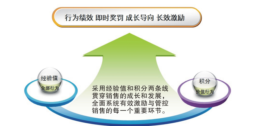 用于衡量銷售人員的能力提升,銷售人員所有的關(guān)鍵行為發(fā)生都對應(yīng)著經(jīng)驗值的提升,每增加一個客戶、每增加一個聯(lián)系記錄、每增加一個百科、每參加一次培訓(xùn)、每在系統(tǒng)中體現(xiàn)一個關(guān)鍵行為,就會增加經(jīng)驗值,當(dāng)然還可以通過接受并完成額外任務(wù)增加經(jīng)驗值,經(jīng)驗值也可以因為不佳的行為而被扣減。每月新增的經(jīng)驗值透過相關(guān)的數(shù)學(xué)模型轉(zhuǎn)化而成當(dāng)月經(jīng)驗值積分。經(jīng)驗值體系的推動也能有效推進(jìn)員工NBSS的積極應(yīng)用,大力提高關(guān)鍵行為轉(zhuǎn)化率。